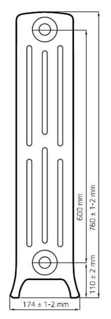 - Габарити секції (В×Ш×Г): 760×63×174 мм