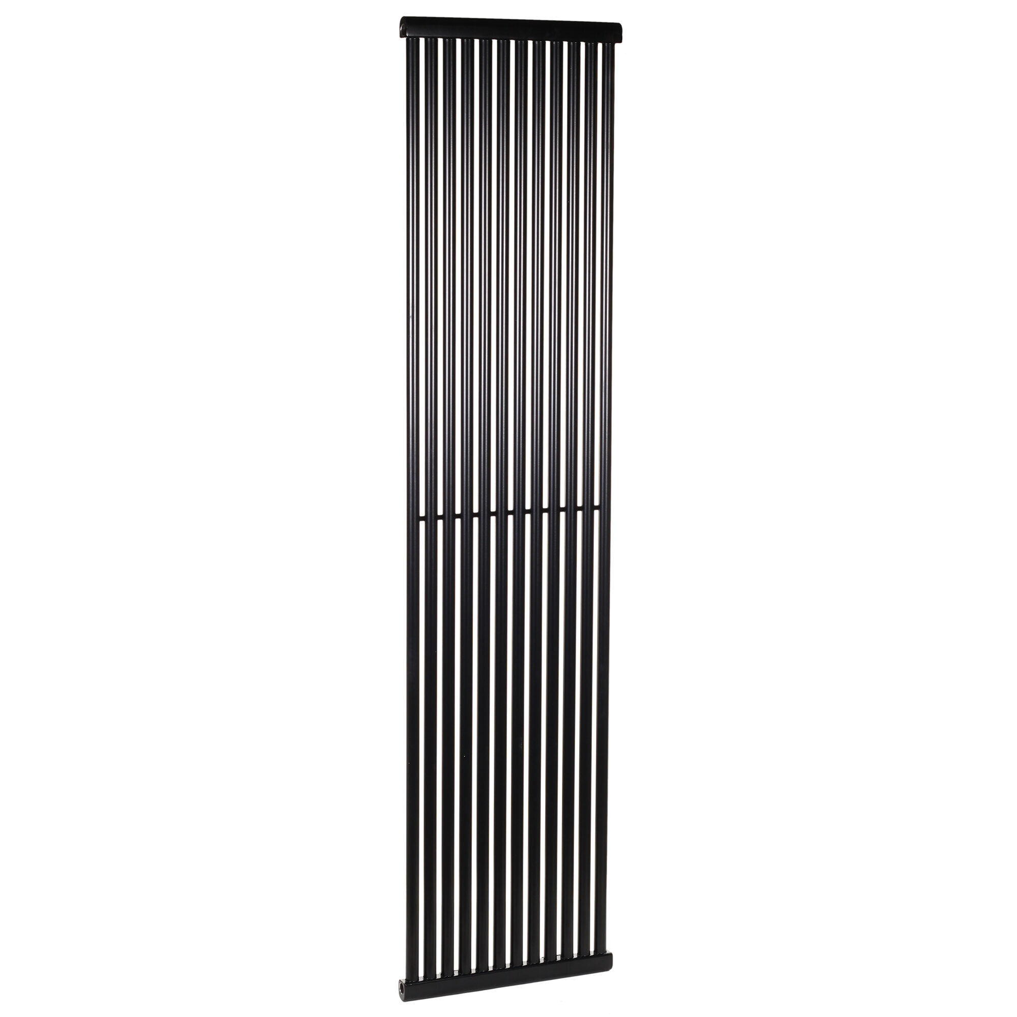 PS Style 1800×441 — вертикальний трубчастий радіатор Betatherm у чорному матовому покритті, який працює як повноцінний прилад опалення і водночас задає стиль приміщенню. Високий формат (1800 мм) візуально «піднімає» стіну та економить місце по ширині, тому модель зручно ставити у передпокої, гардеробній, вітальні або в зоні, де під вікном уже стоять меблі. Чорний колір підкреслює геометрію труб та добре поєднується з деревом, каменем, металом і темною фурнітурою.